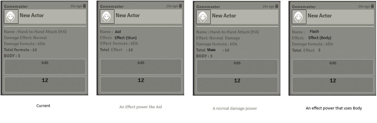 Thank you for this. Unfortunately, this is an incomplete map of all possible roll results and their output fields. I'm going to hold this one to collect use cases of all possible roll output types and more consistently map them with to avoid relabeling these more than one more time. We would certainly appreciate your effect-output taxonomy to compare with my own. I can finalize then a proposal and we will get feedback from the community.