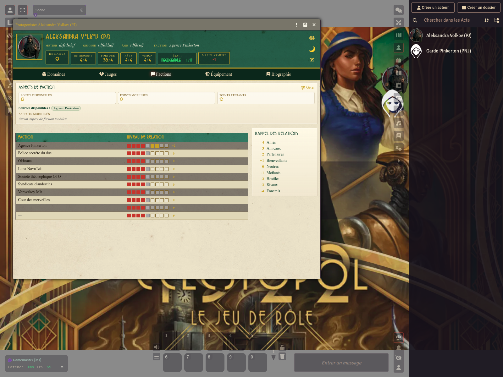 Corrections sur factions, aspects, degats et fiches PNJs